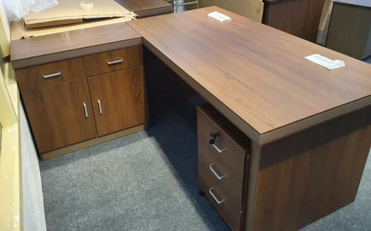 Large L-shaped professional desk with 3 drawers and a CPU compartment.